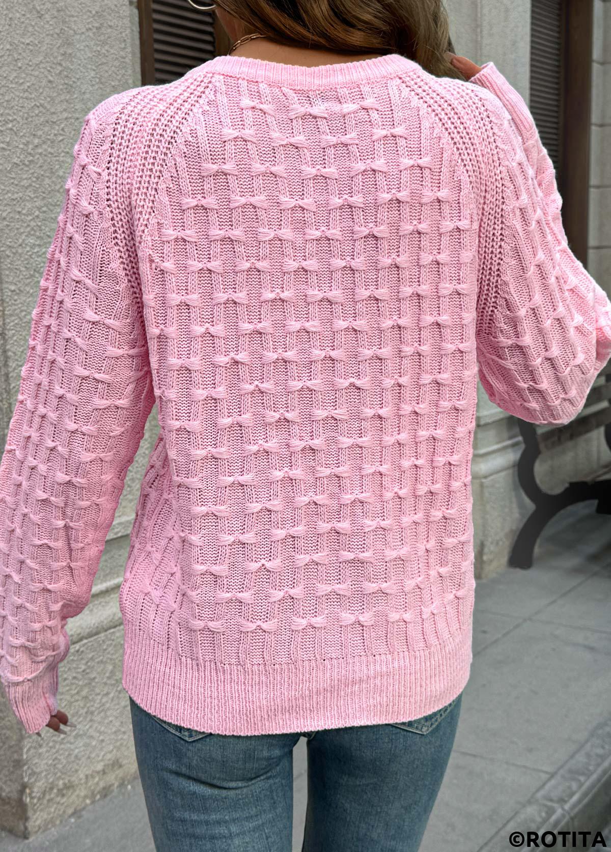 Home  >  Tops  >  Sweaters  >  Button Pink Round Neck Long Sleeve Sweater