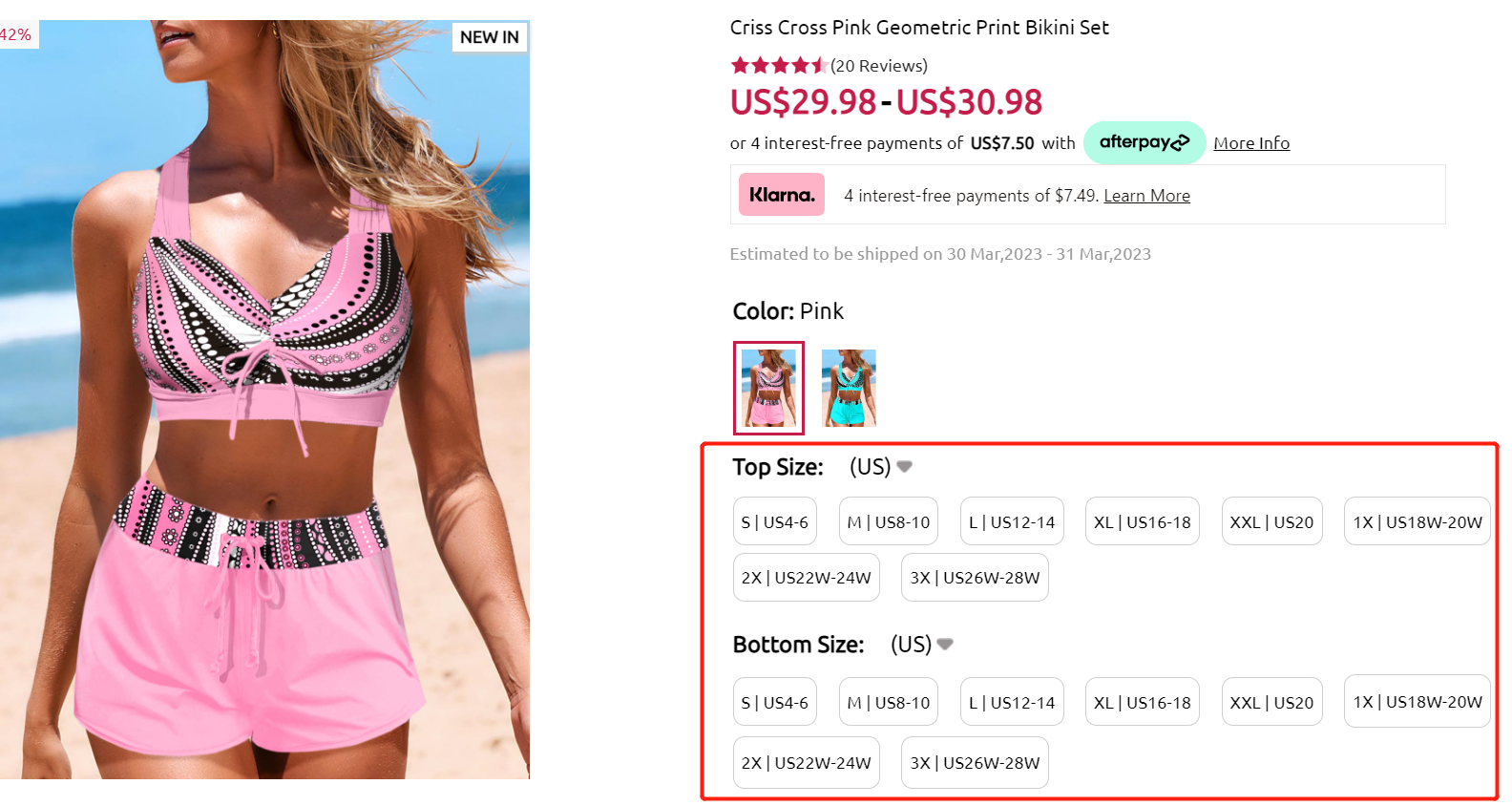 2. Kann ich verschiedene Größen für Badeoberteile und -unterteile kaufen?