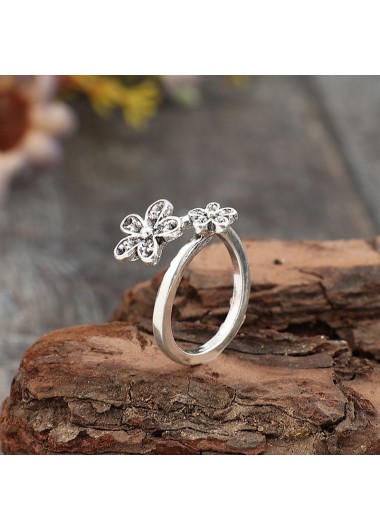 Bague ajustable en alliage argenté à motif floral