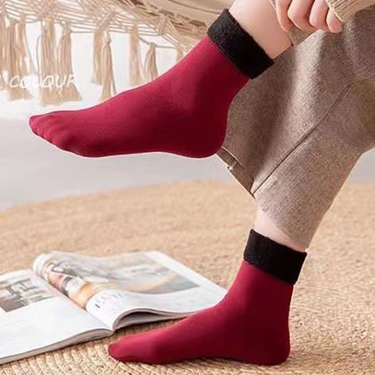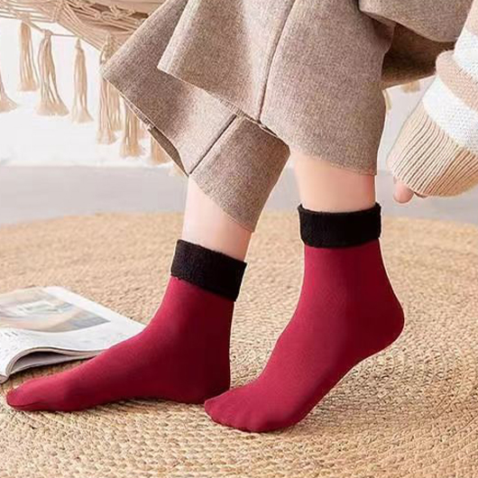 Maison  >  Accessoires  >  Chaussettes et Bonneterie  >  chaussettes mi-mollet rouge vin en peluche