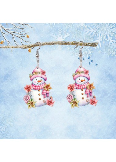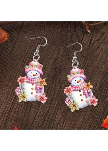 • boucles d'oreilles en acrylique rose motif bonhomme de neige de Noël