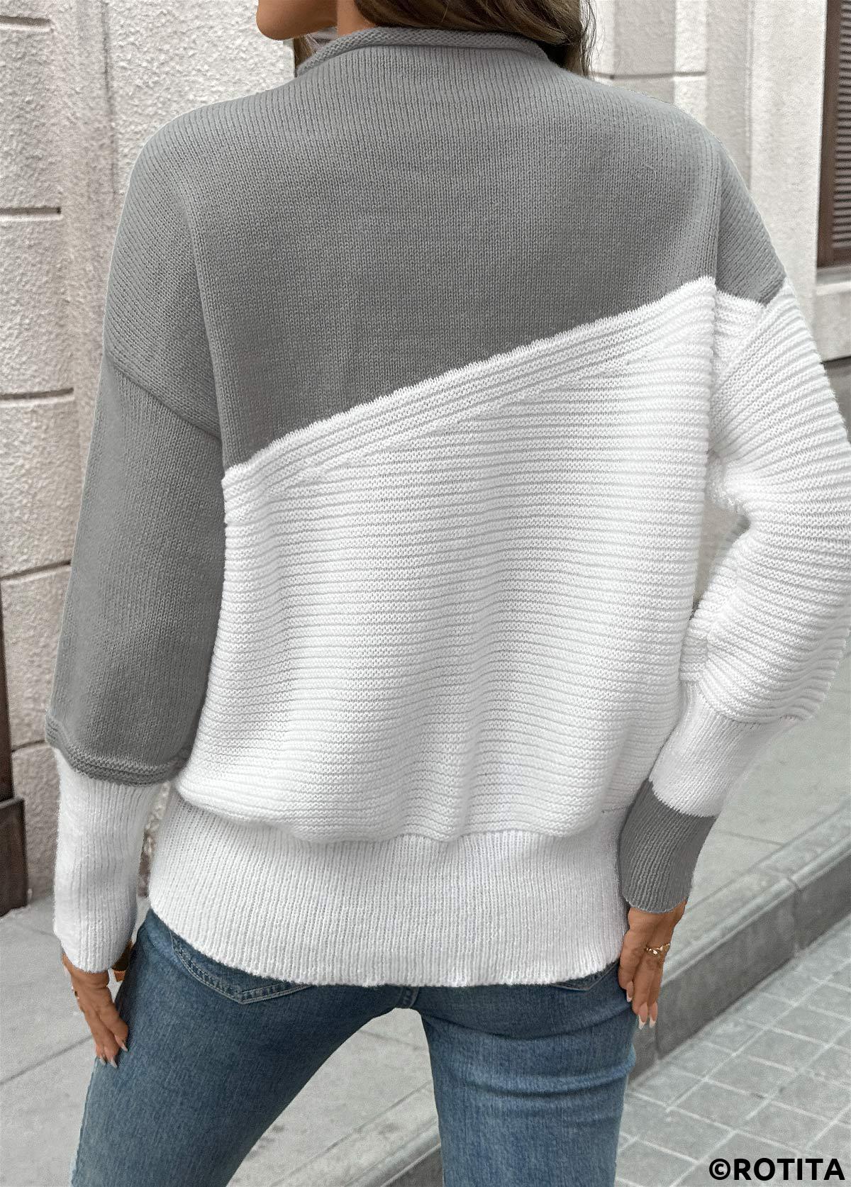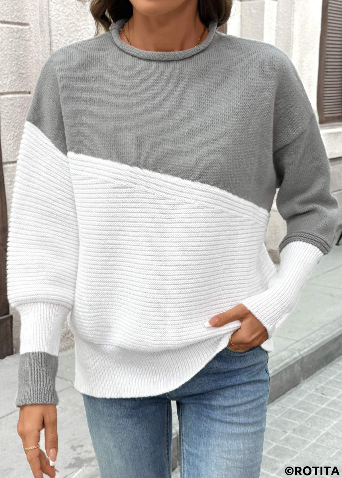 Grey Round Neck Long Sleeve Sweater