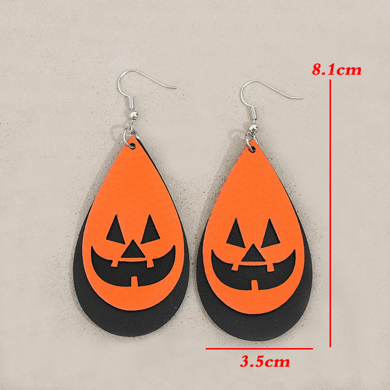 Home  >  Jewelry  >  Earrings  >  Halloween Droplet Orange Faux Leather Earrings